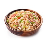 Гречневая лапша, бекон, курица, шампиньоны, овощи, обжаренные в соусе терияки